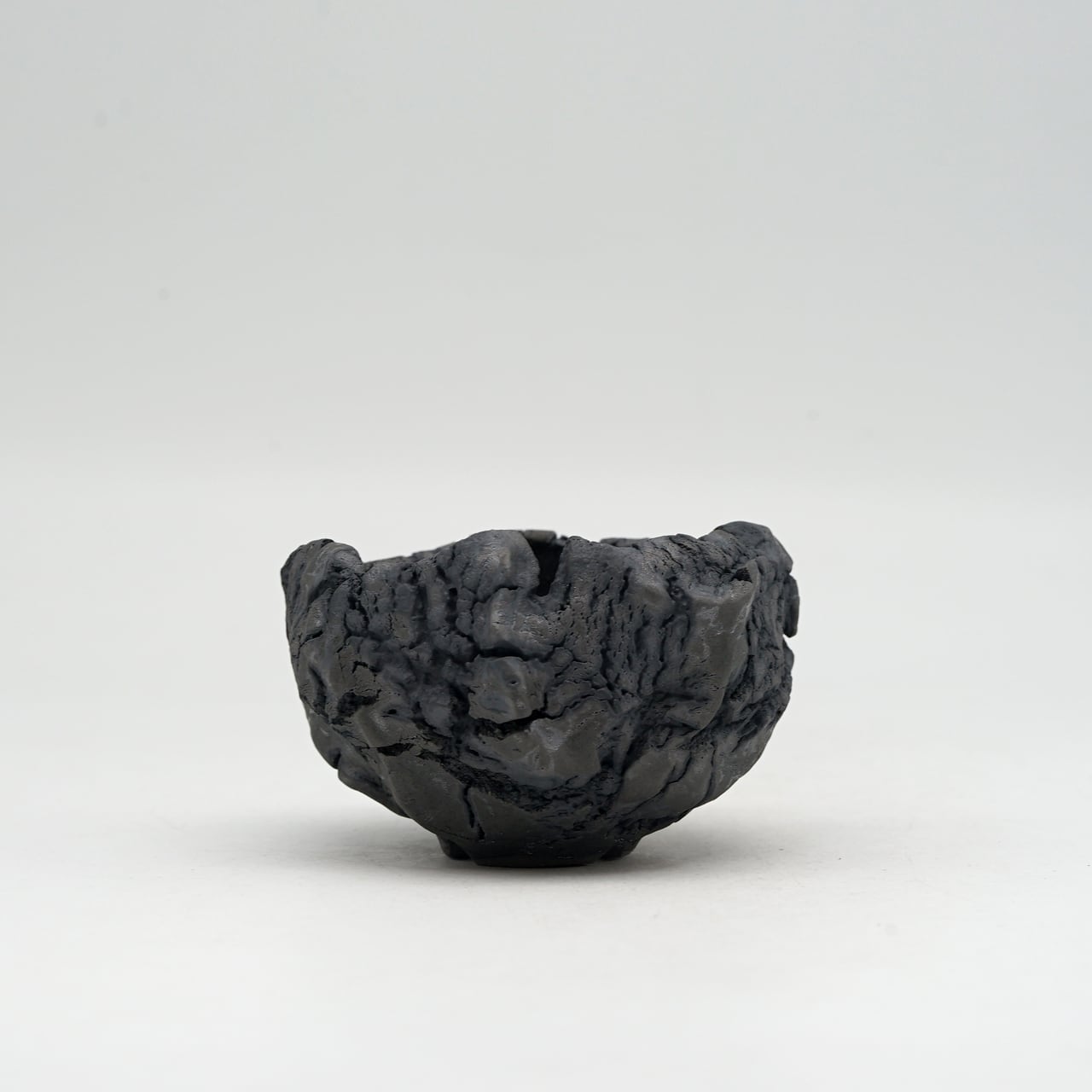 テクスチャはサイの顔に刻まれる筋や皮膚のシワ(48)感にフォーカスし、デザインは勢いに任せて成形した個性あるアシンメトリーな無骨さを表現した作品です。