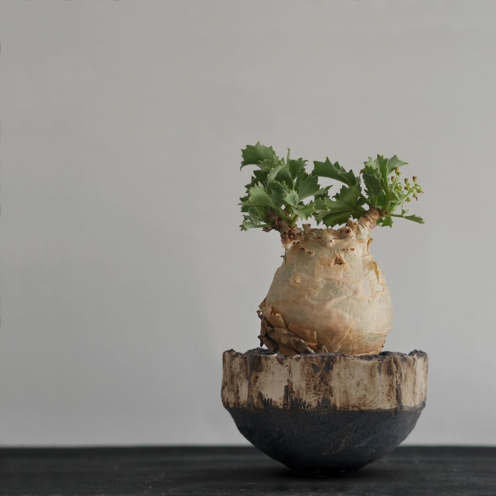 多くの植物を育て、そして多くの作家様と植木鉢を作り培ってきた経験を活かし、自身でも作陶を始める。独創的な技法により作られる植木鉢は、力強く、かつ繊細で、アーティスティックな作品となっている。