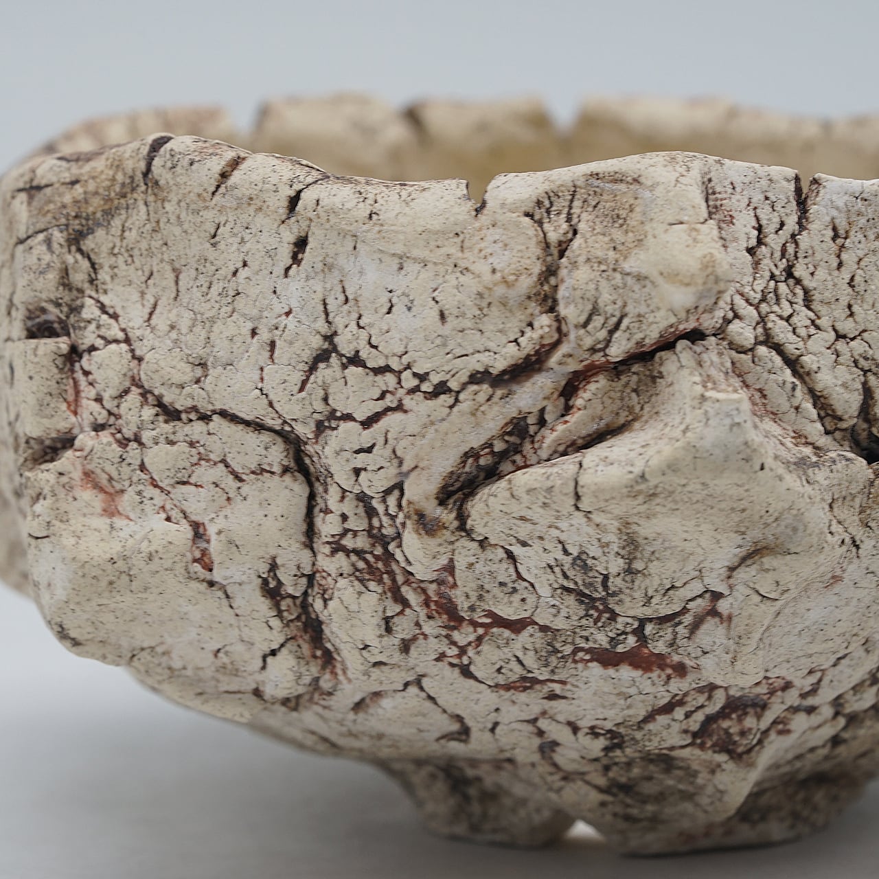 テクスチャはサイの顔に刻まれる筋や皮膚のシワ(48)感にフォーカスし、デザインは勢いに任せて成形した個性あるアシンメトリーな無骨さを表現した作品です。