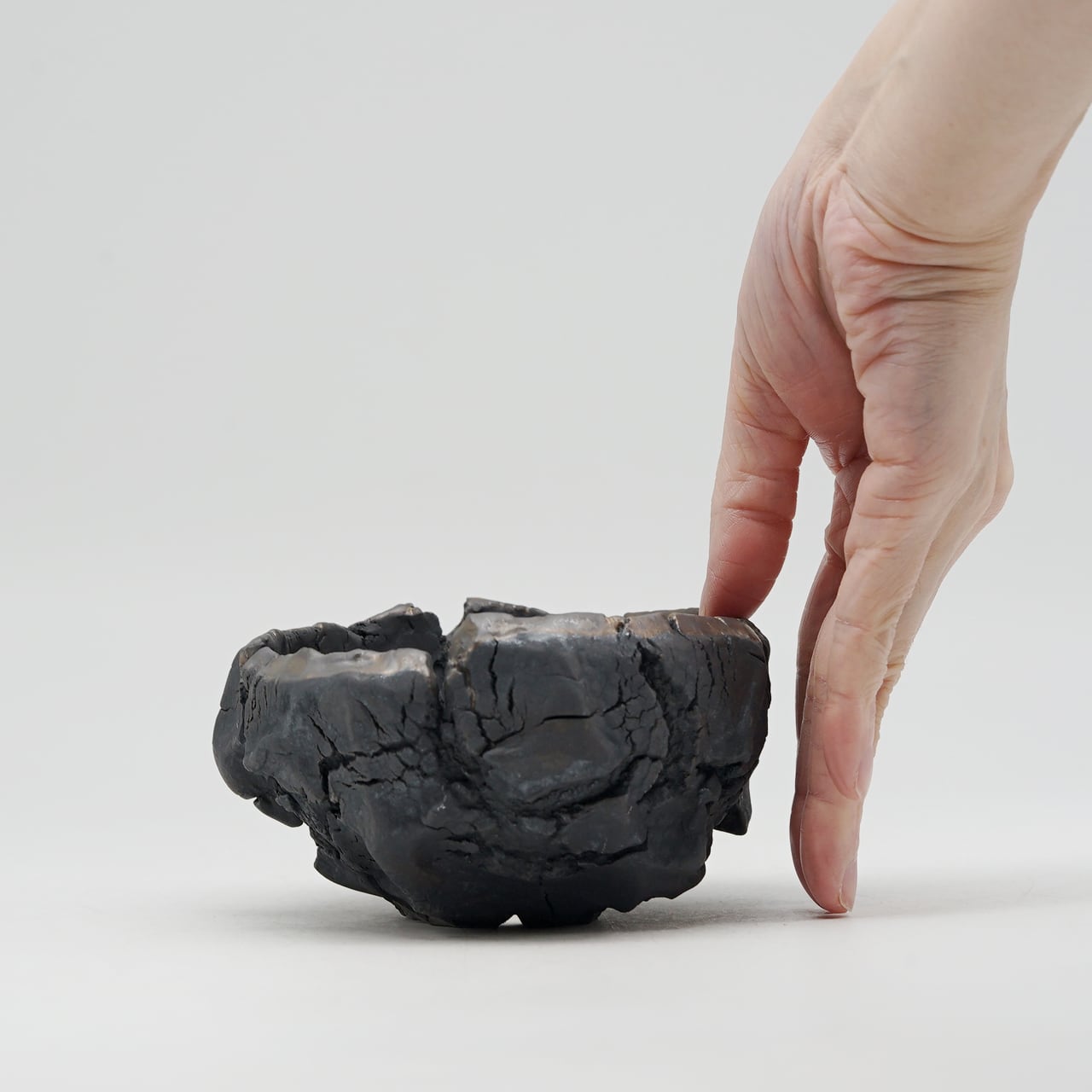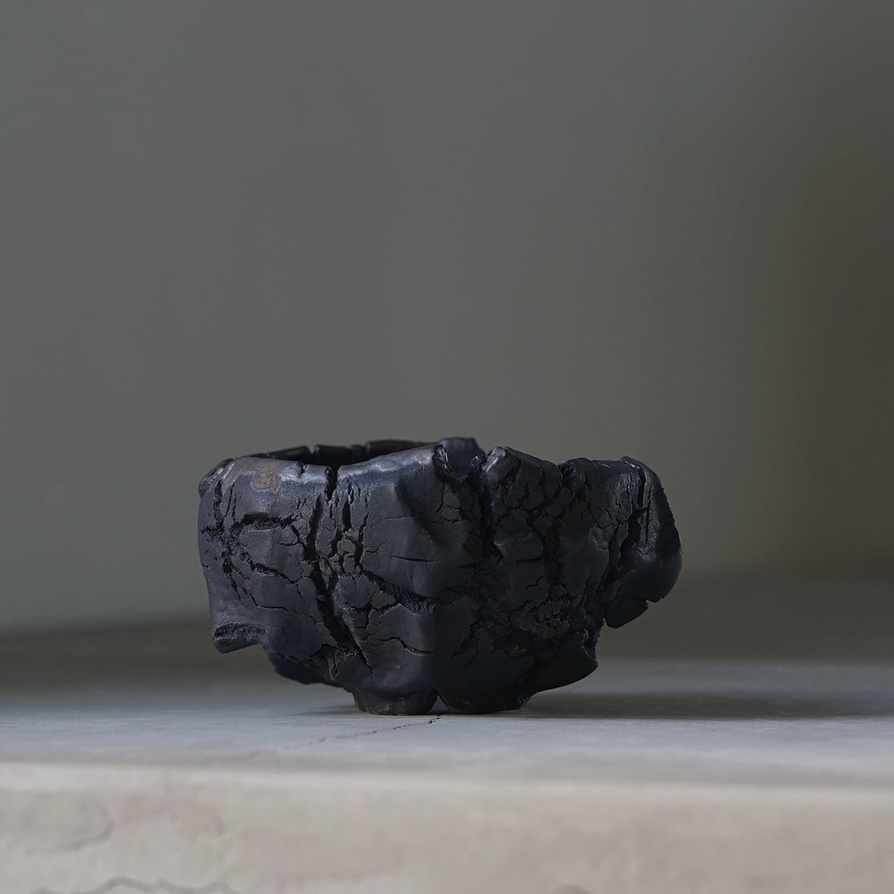 テクスチャはサイの顔に刻まれる筋や皮膚のシワ(48)感にフォーカスし、デザインは勢いに任せて成形した個性あるアシンメトリーな無骨さを表現した作品です。